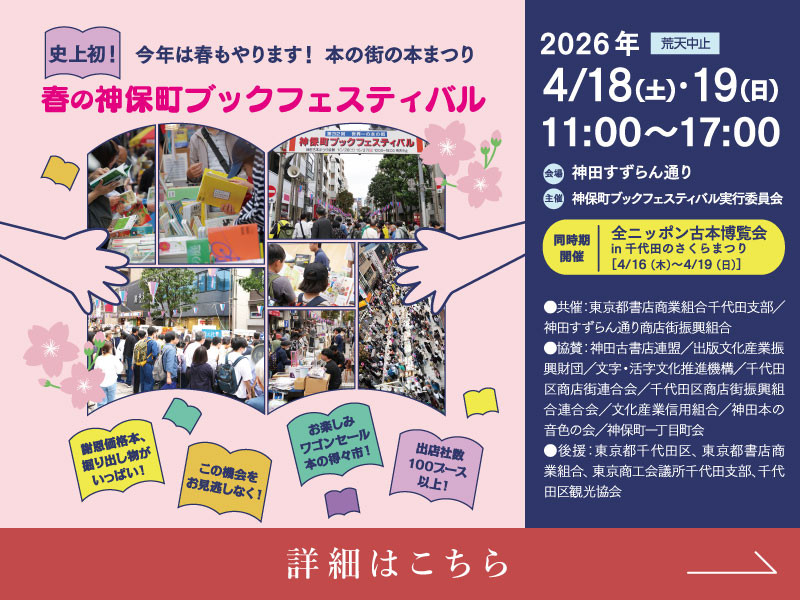 - 2026/02/19 史上初開催! 「春の神保町ブックフェスティバル」2026年4/18(土)、19(日)